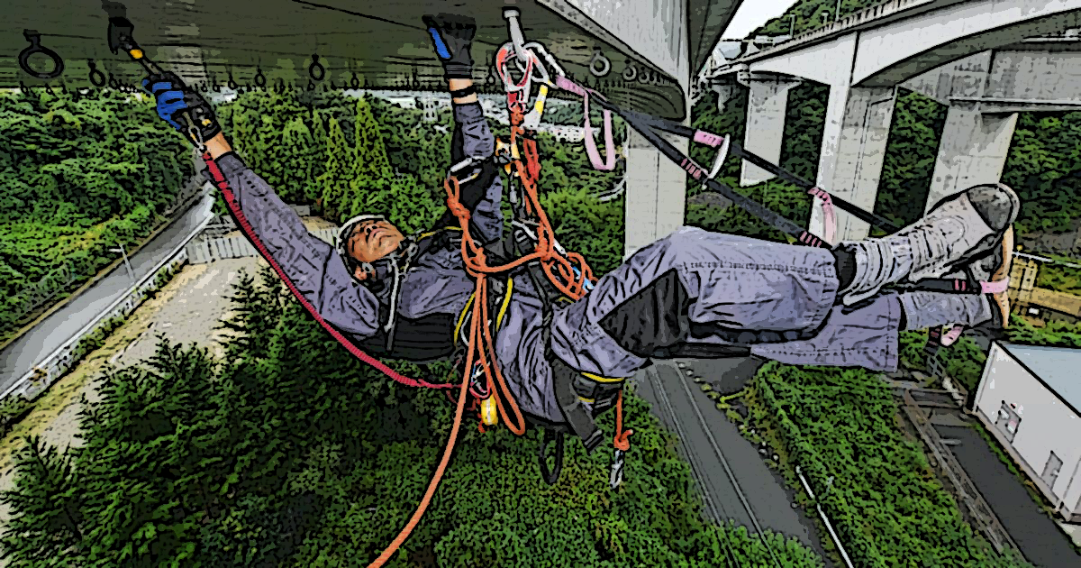 まず、特殊高所技術とは強度の強いロープや特殊な機材を用いて、高所の点検や調査などをするという技術です。